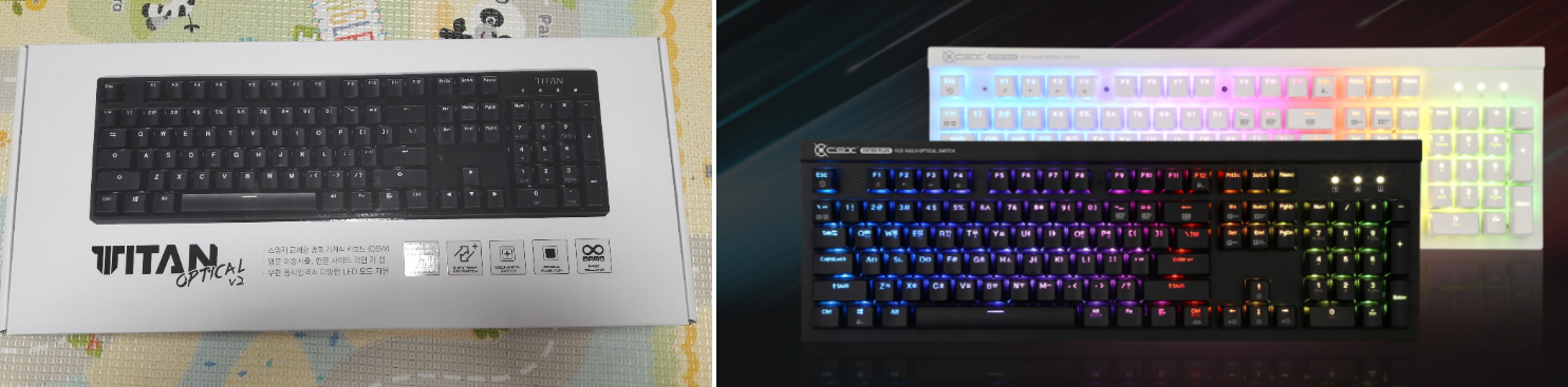 제닉스 TITAN OPTICAL v2와 앱코 ck 700 플러스가 원하는 기준을 충족하는 모델였다. 그런데, 앱코 키보드는 LED 불빛이 화려하긴 했지만, 너무 좌우로 불빛이 비춰 집중도를 떨어트렸다.