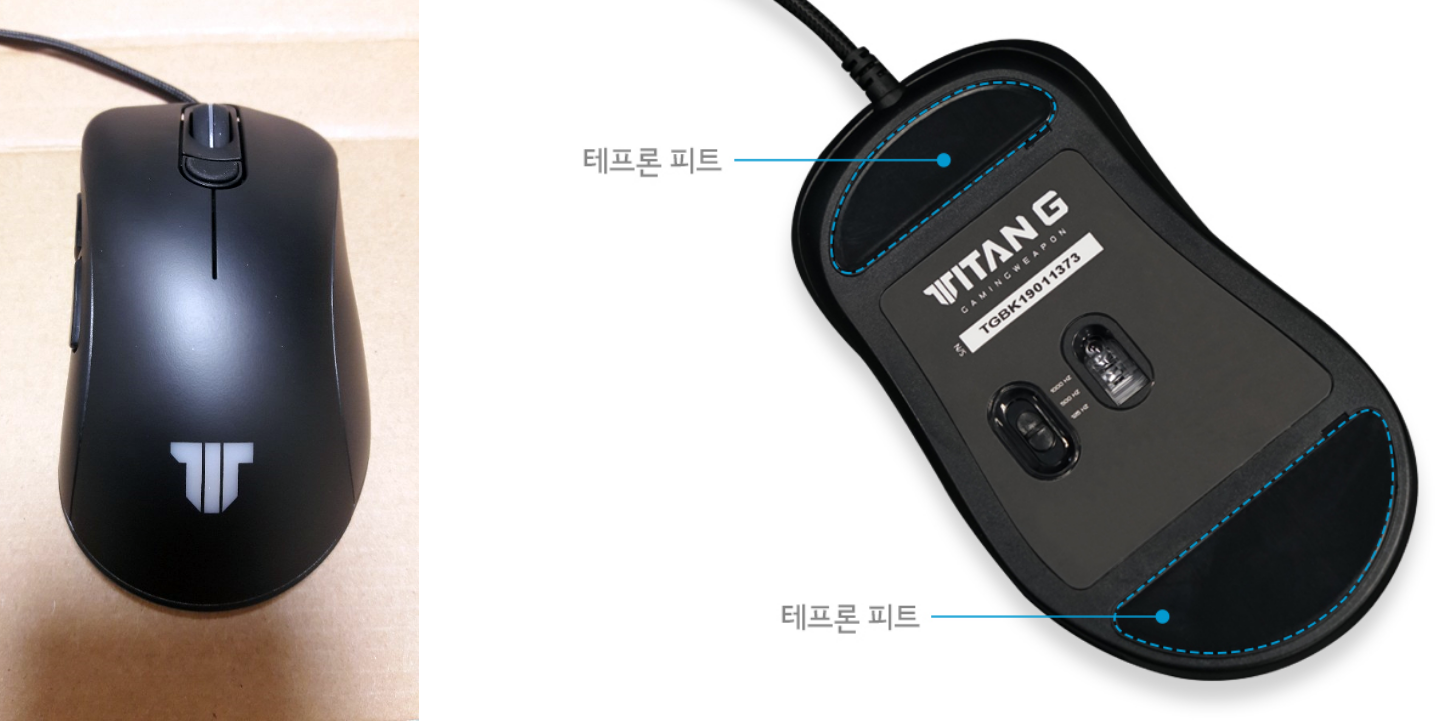 여기에 매끄러운 슬라이딩을 제공하는 테프론 피트가 마우스 아래 상하에 부착되어 정확하고 빠른 마우스 컨트롤이 가능했다.
