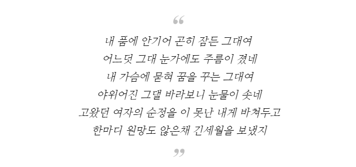 눈에 들어온 와이프를 보고 떠오른 노래가 1990년 발매한 가수 김정수의 '당신' 노래 가사이다.
