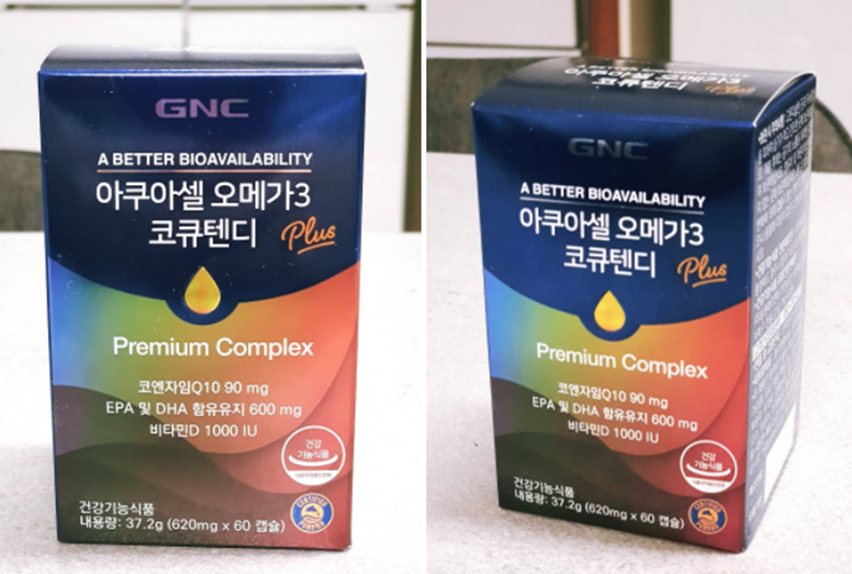 전달받은 동원에프앤비 GNC 아쿠아셀 오메가3 코큐텐디를 살펴보니, 가장 눈에 띄는 제품 패키지에서 표시된 <아쿠아셀 오메가3> 공식 로고였다. 아마도 4세대 오메가인 아쿠아셀 오메가3를 강조하기 위한 포장으로 보인다. (추후 아쿠아셀 로고 여부로 제품의 흡수율을 구분하는 시기가 오지 않을까?? 싶다.)